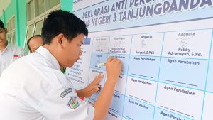 SMPN 3 Tanjungpandan telah melaksanakan deklarasi anti perundungan program Roots pada Senin (30/09/2024). Kegiatan yang dilakukan adalah menandatangani deklarasi anti perundungan oleh kepala sekolah, perwakilan guru sebagai TPPKS, guru fasilitator program Roots, perwakilan orang tua siswa, perwakilan tenaga kependidikan dan 30 orang agen perubahan terpilih. Selain penandatanganan deklarasi, Kepala Sekolah juga menyerahkan poster anti perundungan kepada setiap kelas.